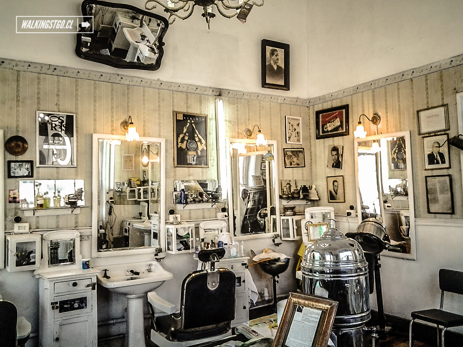 Lamentablemente, con tanto ornamento, no cabe lugar para que barberos y clientes puedan entrar en el local, así que te atienden en plena calle. Cuando llueve está bien, porque, según me han explicado, te descuentan el lavado del pelo, pero los días que aprieta el sol, la bata anti-pelos podría llegar a resultar sofocante, especialmente porque está hecha con tela vaquera.